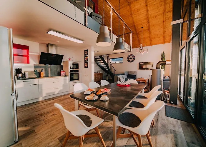 Willa Ferienhaus "Chalet100" oferuje udogodnienia z wyżywieniem we własnym zakresie, takie jak pełnowymiarowa kuchnia z miejscem do jedzenia. Kuchnia wyposażona jest w kuchenkę mikrofalową, czajnik elektryczny i lodówkę. Na miejscu dostępny jest taras, a w pobliżu obiektu można uprawiać zajęcia wodne, wędrówki piesze i Wędkarstwo.